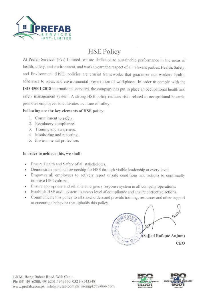 Certification Explore our impressive array of industry-standard certificates and approvals. Policies Quality Policy HSE-Policy Ant-Corruption Policy Grievances-Complaints Policy CSR Sustainability Performance Policy Labour Policy